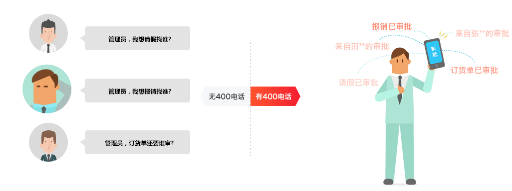 通过深圳400电话办公OA实现移动智能审批,免去了从前纸质单据的人工传递,流程随时随地发起,主管利用碎片时间,随时审批,整个审批流程有电子存档凭证,方便管理。
